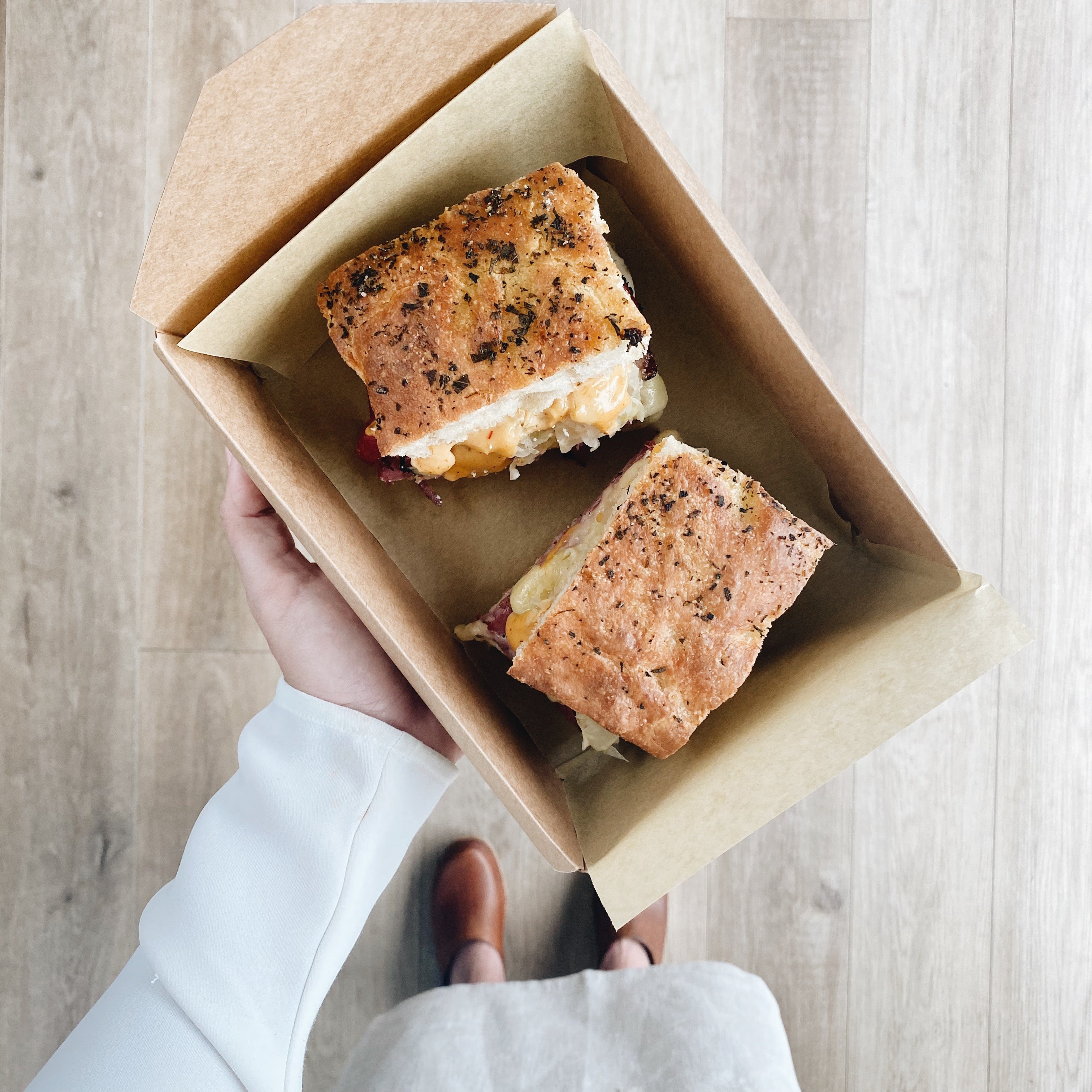Pastrami, house made sauerkraut, gruyere cheese, house made Russian dressing served on our house herb focaccia, baked fresh every morning.